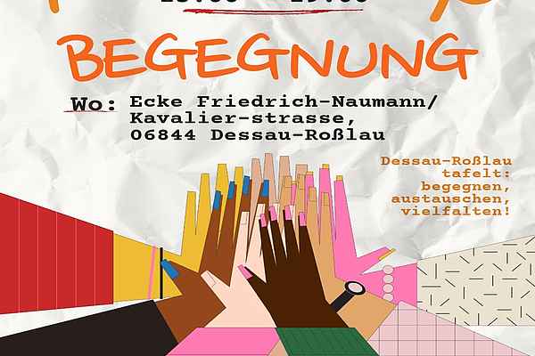 Freitag, 26. September, 15–19 Uhr: Die Tische stehen wieder – und mit ihnen die Einladung, Platz zu nehmen. Das Integrationsbüro der Stadt Dessau-Roßlau lädt gemeinsam mit lokalen Engagierten erneut zum Straßenfest - den „Tafeln der Begegnung“. Veranstaltungsort ist Ecke Friedrich-Naumann-Straße / Kavalierstraße, 06844 Dessau-Roßlau, direkt vor dem Laden „Sloboda“. Wer nach Feierabend Hunger, Neugier oder eine Meinung mitbringt, ist genau richtig. Eintritt kostet´s keinen, vielleicht ein Lächeln – beides ist Willkommen (Spenden an die Vereine sind möglich).